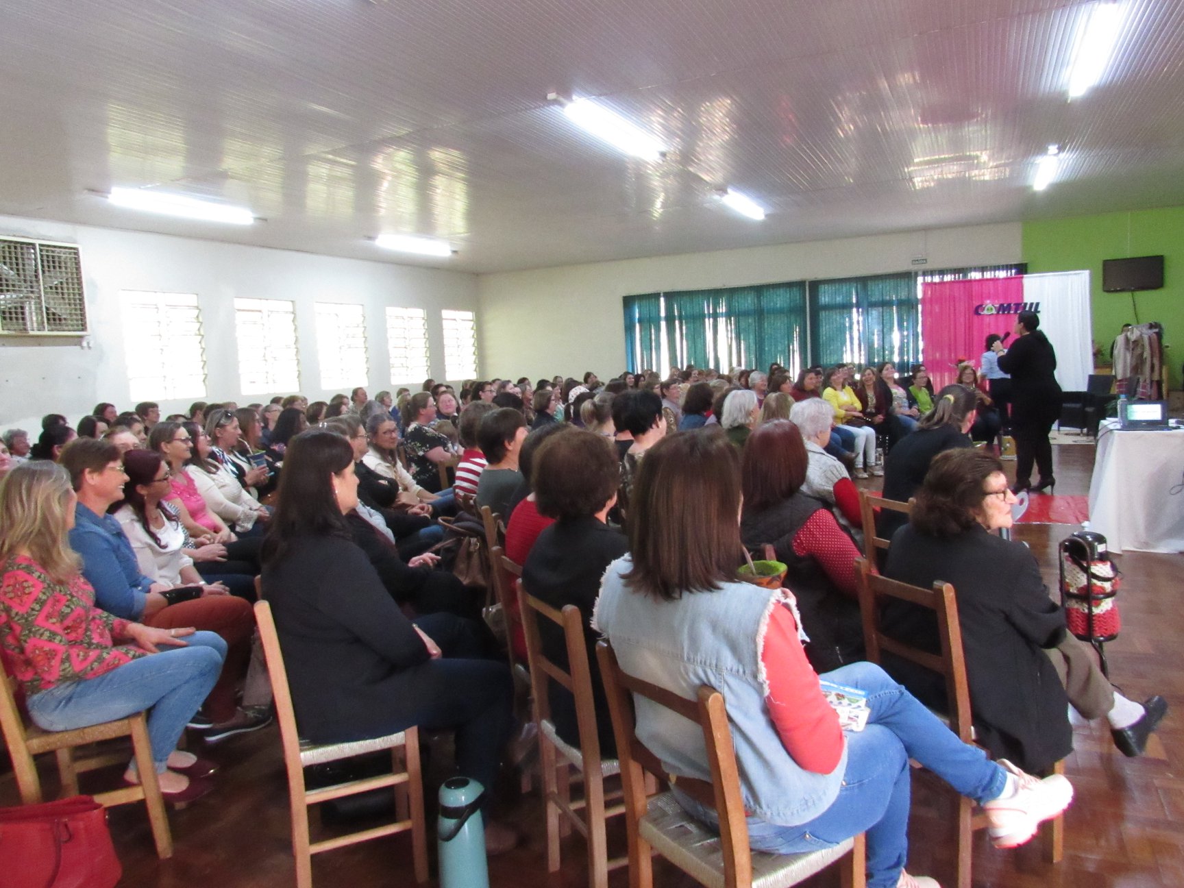 Aconteceu na tarde do dia 11 de Julho (quinta-feira), o 8° Encontro de Mulheres promovido pela COMTUL. O evento contou com a participação de quase 200 mulheres, entre associadas e clientes da Cooperativa. A abertura contou com a presença do nosso Presidente Sr. Enilto Balbinot, que deu as boas-vindas a todas. Durante a tarde ocorreram diversas atividades, dentre elas: palestra da Coooper Concórdia pelo programa Capacita, com o tema ?Saúde da Mulher ? Como a saúde mental pode influenciar na saúde física?, com a Enfermeira Tatiane Maidana Picek; sorteio de diversos prêmios; desfile com apresentação da coleção outono/inverno da Hoje Modas e coquetel de encerramento. O encontro também contou a parceria da Ervateira Terra Nativa, que disponibilizou erva e água quente no local. A COMTUL agradece a participação de todas, e aos nossos apoiadores Ervateira Terra Nativa e Hoje Modas, pela parceria que engrandeceu este evento.